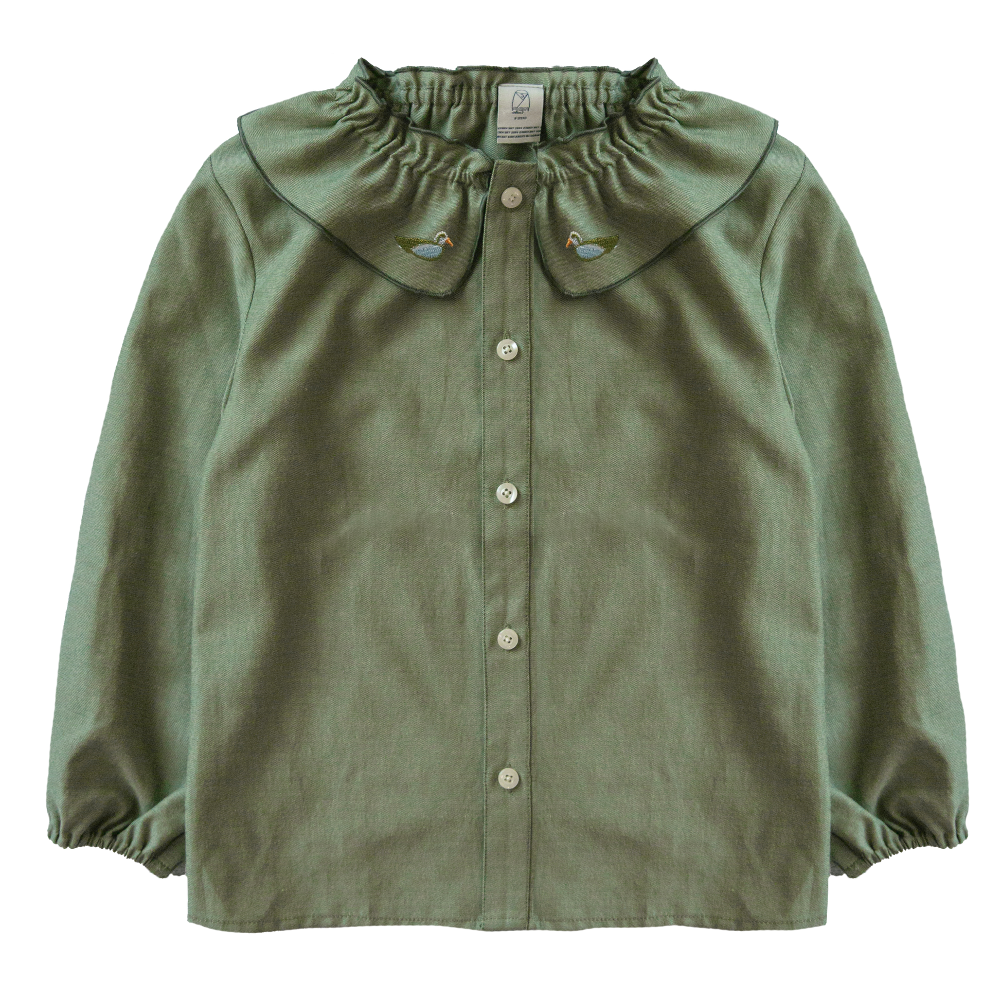 - Mallard embroidery at collar